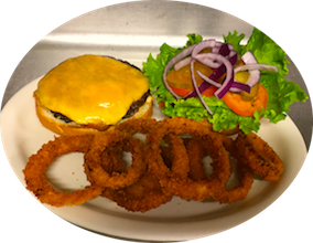 This is one mountain of a burger! If you’ve tried to summit than you deserve this! 3-1/3lb all beef patties topped with lettuce, tomato, pickles, bacon, grilled onions, your choice of cheese and burger sauce.