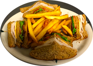 3 slices of your choice of white, whole wheat, or sourdough bread with your choice of American, Swiss, or Cheddar cheese with turkey, bacon, tomato, and lettuce.